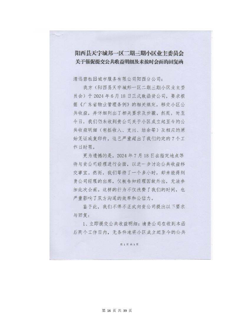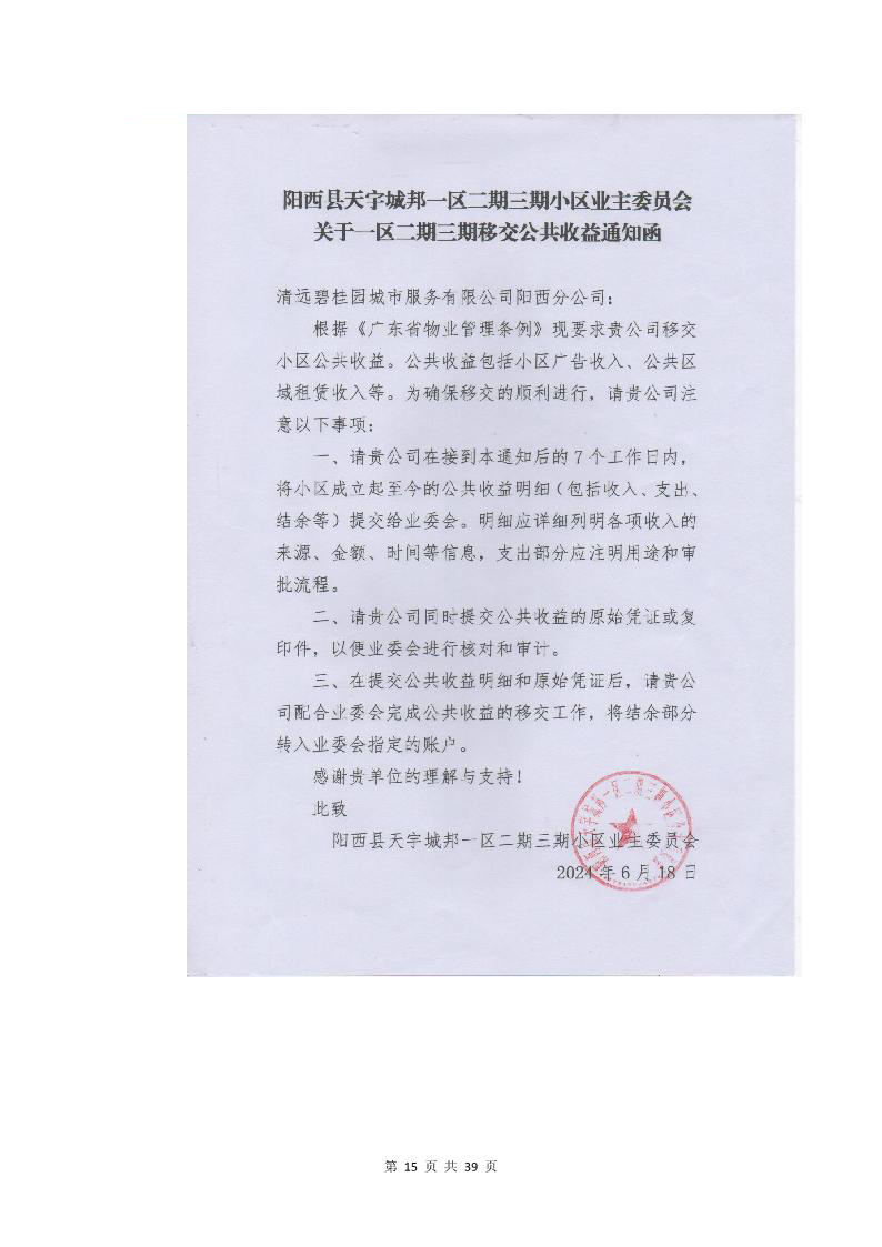天宇城邦一区二期三期业委会工作汇总公示20240820
