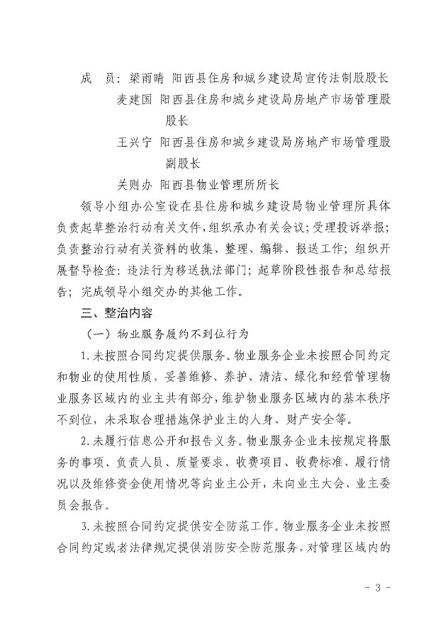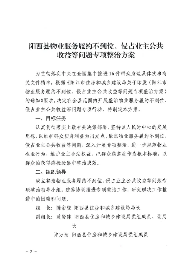阳西县物业服务履约不到位、侵占业主公共收益等问题专项整治方案